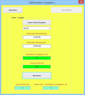 In Version 1.0.0.8: Fehler im Dialog “Verbraucherliste” beseitigt.In Version 1.0.0.9: Monatliche Grundgebühr kann eingetragen werden. Löschen von Daten aus demDiagramm durch rechten Mausklick. Software “Intern” verbessert.