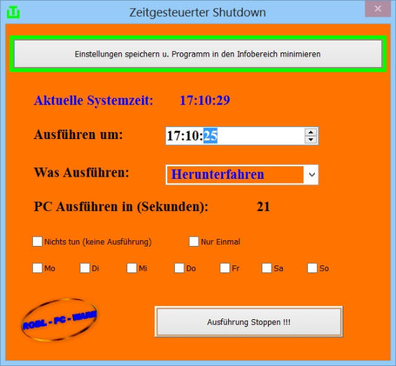 Mit “Zeitgesteuerter Shutdown” können Sie Ihren Computer zu einer vorher festgelegtenUhrzeit und Wochentag entweder Herunterfahren, Neustarten oder den Benutzer Abmelden.Falls Sie zur z.B. Shutdown - Zeit noch am Computer arbeiten öffnet sich das Programmfensterund Sie können das Ausführen Stoppen. Außerdem werden Sie akustisch ( Stimme ) gewarnt.Sollten Sie sich zum Zeitpunkt einer Ausführung auf der App - Seite (Windows 8) befinden, werden Sie ebenfallsakustisch gewarnt. Windows Installer.