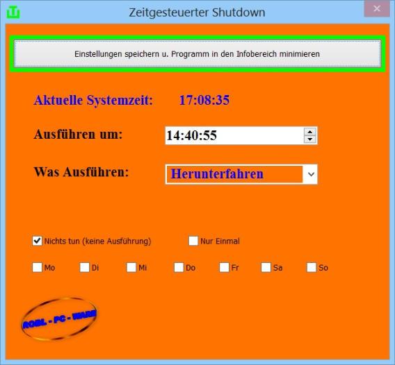 Mit “Zeitgesteuerter Shutdown” können Sie Ihren Computer zu einer vorher festgelegtenUhrzeit und Wochentag entweder Herunterfahren, Neustarten oder den Benutzer Abmelden.Falls Sie zur z.B. Shutdown - Zeit noch am Computer arbeiten öffnet sich das Programmfensterund Sie können das Ausführen Stoppen. Außerdem werden Sie akustisch ( Stimme ) gewarnt.Sollten Sie sich zum Zeitpunkt einer Ausführung auf der App - Seite (Windows 8) befinden, werden Sie ebenfallsakustisch gewarnt. Windows Installer.
